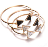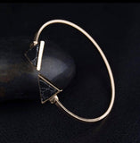 Gold Tone Punk Trendy White Black Triangle Faux Marbleized Stone Cuff Bangle Bracelet