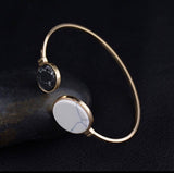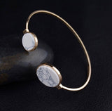 Round Black White Turquoise Marbleized Stone Charm Cuff Bangle Bracelet