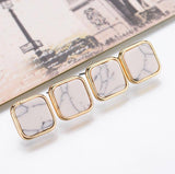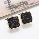 Black White Faux Marbled Stone Square Stud Earrings