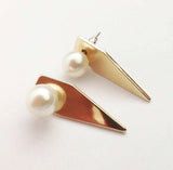 Casual Geometric Triangle Created Pearls Flat Back Swing Earrings