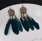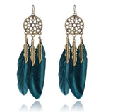 Dream Catcher Hollow out Vintage Leaf Feather Dangle Bohemia Style Earrings