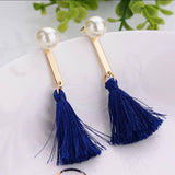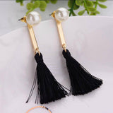 Gold Metal Bar Tassel Fringe Pearls Ear Jackets Drop Earrings