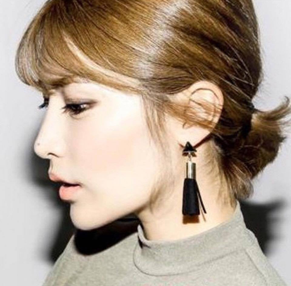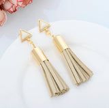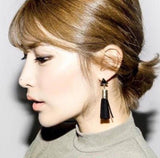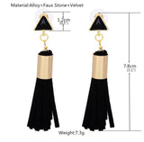 Long Triangle Faux Stone Black Tassel Velvet Drop Earrings