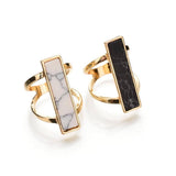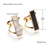 Black White Rectangle Faux Marble Stone Gold Plated Double Layer Ring