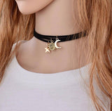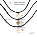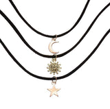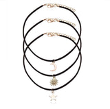 3PCS/Set Star Moon Sun Black Velvet Rope Chokers Necklaces Gold Plated Pendants Necklace