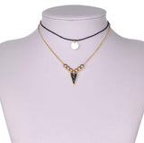 Gold Beads Leather Chokers Double Layer Triangle Faux Stone Necklace
