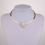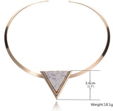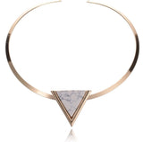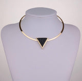 Gold Plated Punk Short Choker Necklaces With Black/White Geometric Triangle Faux Stone