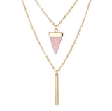 Multi Layer Bar Faux Stone Pendant Necklaces Triangle Black Pink Stone Necklace